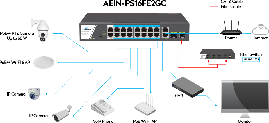 | Downlink Ports | 16*10/100M Self-adaptive PoE+ Ports (Port No.1-2 will support 60W Hi-PoE) |