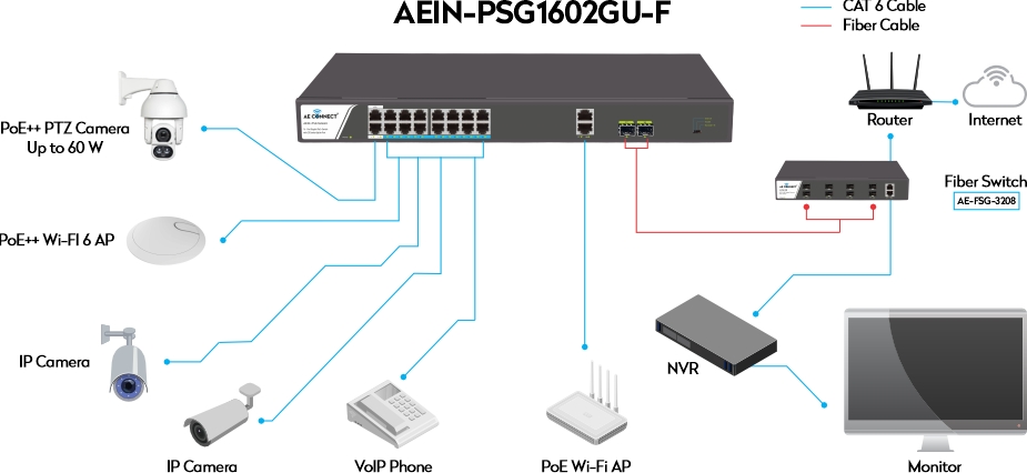 | Downlink Ports | 16*10/100/1000M Self-adaptive PoE+ Ports |